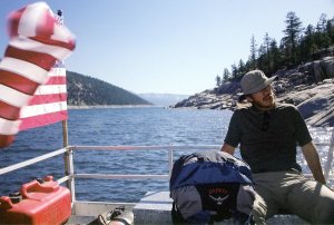 Well, I did enjoy the boat ride, although the scenery was nothing exceptional. The ride took about 45 minutes, and the moist breeze helped me forget about the drought we have been witnessing all along the trail. But VVR itself also turned out to be quite a disappointment. Instead of arriving at some lake-side resort, we were instead transferred to an awaiting van. We piled up into the back, sat down on milk crates, and watched as the driver locked us in. I guess this is how our southern neighbors feel when they catch a ride with a "coyote". Some 15 minutes of bouncy ride later we finally arrived at VVR. The resort sits in a pine forest. Visually, it is a very nice place. But, probably due to the effort required to get here, I could not help but think I was in some amusement park. The free beer on arrival turned out to be offered only to PCT hikers.