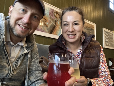 We took a direct United flight from LAX to Eureka/Arcata airport. Both Sandra and I got upgraded but ended up with different seats. Sandra was in a single while I was in a double. Once my companion, an older fairly large black guy, arrived, I asked him if he wanted to switch with Sandra. Later, I found out from the flight attendants that my companion was the rapper Xzibit on his way to a concert at some NorCal casino. After chatting with some other passengers also coming for the marathon, we grabbed our rental car from Enterprise and proceeded down to Eureka to check in at the historical Eureka Inn. This hotel is truly spectacular, and judging by the many portraits of famous people who have stayed here (including many world-famous politicians and entertainers), used to be the social hub of this town. One complaint I have however is that, at least our room, had extremely poor sound insulation, and this is coming from somebody who gets to stay in a lot of cheap inns because of my work commuting schedule. This was particularly bad the night before the marathon, as I could not fall asleep until after 1 am due to our neighbor's conversation and TV. They easily could have been in our room with how thin the wall was. That afternoon we drove down to Ferndale and went for a short walk along the Lost Coast. We also stopped by for dinner at Ferndale Pizza Company (where we had the tasty Hot Cowgirl), and also tried ciders at the Sitka wine lounge.