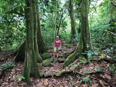 Moorea is so pretty! Even if you don't get a car, make sure to find a tour to drive you around. We booked two night at Fenua Mata'i'oa in the north-western part. Since we were early, on the way there we stopped by the "Belvedere", or the lookout point. This is also a starting point for various trails through out the island. We were not prepared for a serious hike, we just did a little circuit near the parking lot. But it was still amazing, with really neat tall trees. Of all the places we visited, I wish we had an extra day here in Moorea just to get in more hiking. This place is a paradise of outdoor activities. The trials are well marked and even include maps for bicycling routes.