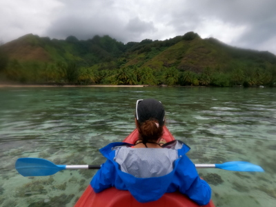 We then returned to the hotel to take out a kayak. Near the hotel, on one of the private island "motus" is a popular restaurant called Cocoa Beach Moorea. This is apparently the place to be but as it was raining, it was closed. You can request a boat shuttle, but as we were so close, we figured we can just kayak over to see what's up. On the way we passed by a large teenager boat party. Spring break in French Polynesia? We also spotted a group of snorkelers playing with rays as you can see in the time lapse video below.