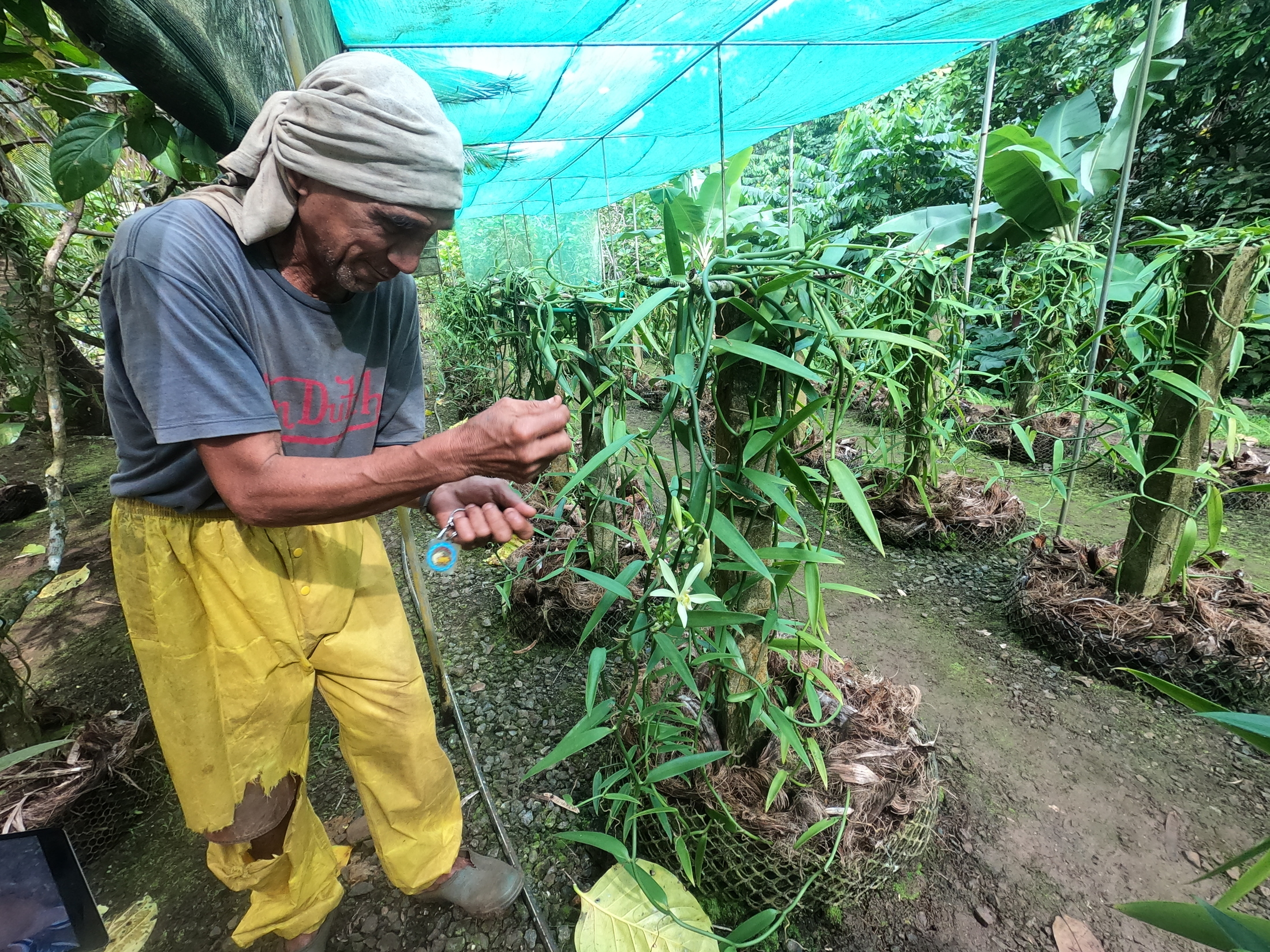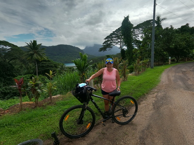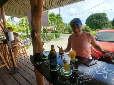The next day we decided to go for a bike tour around the island. I dropped the ball here in that I did not properly calculate the total distance. I figured it will be about 15 miles and will take us no more than 4 hours. Well, 35 miles and 8 hours later, we finally reached back home, all tired. What really did us in were the hills! All the prior islands were quite flat. Granted, they all have a big mountain in the middle but the ring road tends to just follow the ocean. Not so much in Huahine. There are some serious hills here, especially for people like us who don't regularly ride bikes. We started heading clockwise and north. One of the first stops was a vanilla plantation. We didn't make any arrangements and just rolled in as a French couple was completing their tour. The owner didn't mind to take us out again. The most fun thing of this was that we kept running into the same couple all the way around the island. Given they were in a car and we on bikes, perhaps our pace was not all that slow!