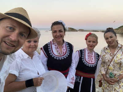 Anyway, after checking in, we went to visit my mom. This was Sandra's first time out here so I wanted to show her the apartment. My mom did an excellent job decorating the small space to make it bright and airy. I also took Sandra to Tegel, the local grocery store. We also had lunch at one of the many seasonal restaurants. Bulgarians are really into salads and they are really good at them. I actually very much like this cuisine due to how heavily it is based on vegetables and also fish. Speaking of fish, we also had Sandra try these really weird skinny green fish that are popular here. Even the bones are green. Interestingly, the day of our visit coincided with some dance festival and we saw groups from various regions perform their traditional folk dances. Later we ran into some of the performers while taking sunset pictures. I also got to, unknowingly, say goodbye to my fluffy cat, which has since this visit passed away at the ripe age of 18 years old. I got this cat, with her sister, when I was still working in California. They followed me to the east coast for my Ph.D. and eventually ended up living with my mom when she was still in the D.C. area. They then made their way to Europe, to an apartment in Slovakia and later a house, then Czech republic, and finally Bulgaria. Those cats had traveled more than some people. The other "skinny" cat, also ended up passing away couple months after Fluffy.