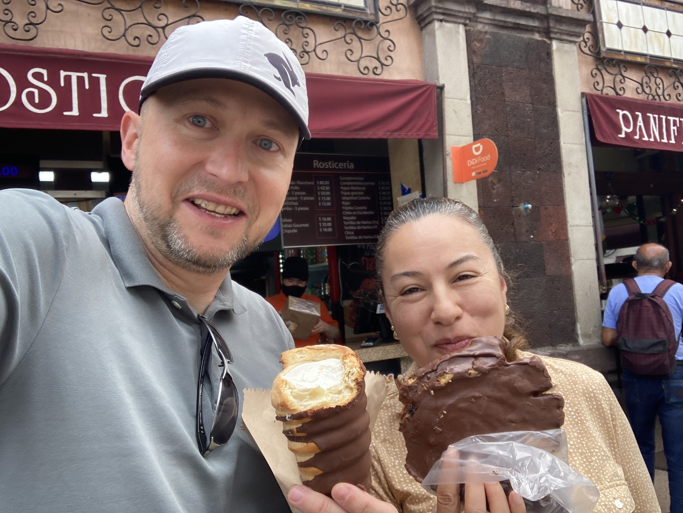 We flew through Houston, and we got lucky to get upgraded to business class on the way and also on the way back from Mexico. After arriving, we checked into to our first hotel, Hyatt Regency Insurgentes. We had some Hyatt free nights to use so this stay was free. I liked the room, especially the really comfortable day bed by the window. It gave me an idea for decorating the Slovakia apartment. After checking in, we walked around the block and found a nice restaurant called Taco N Salsa. Not only we had tacos, but we also had some excellent deserts. We then did more strolling and stopped for a drink in a place called Beer Stop Insurgentes.