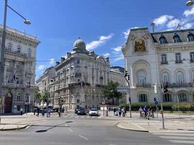 We arrived in Vienna from Bratislava after our check in on the new apartment in Piešťany. We ended up staying at the Andaz, where we had free stays thanks to Hyatt points. This turned out to be a really nice hotel located conveniently by the main train station, and also a short walk from the goal of this trip: the Belvedere Palace. The hotel has an amazing rooftop bar which was full of smartly-dressed participants in the Vienna social-ladder climbing scene (my take).