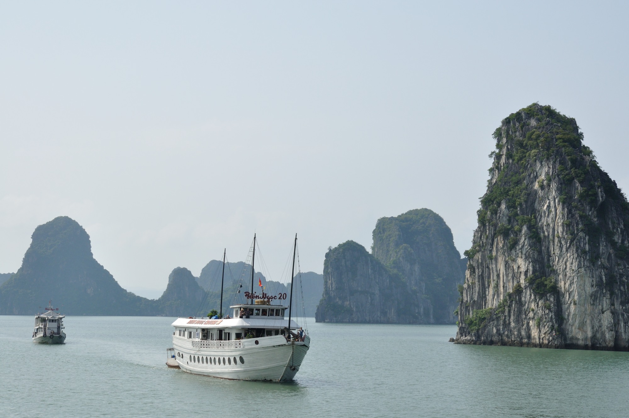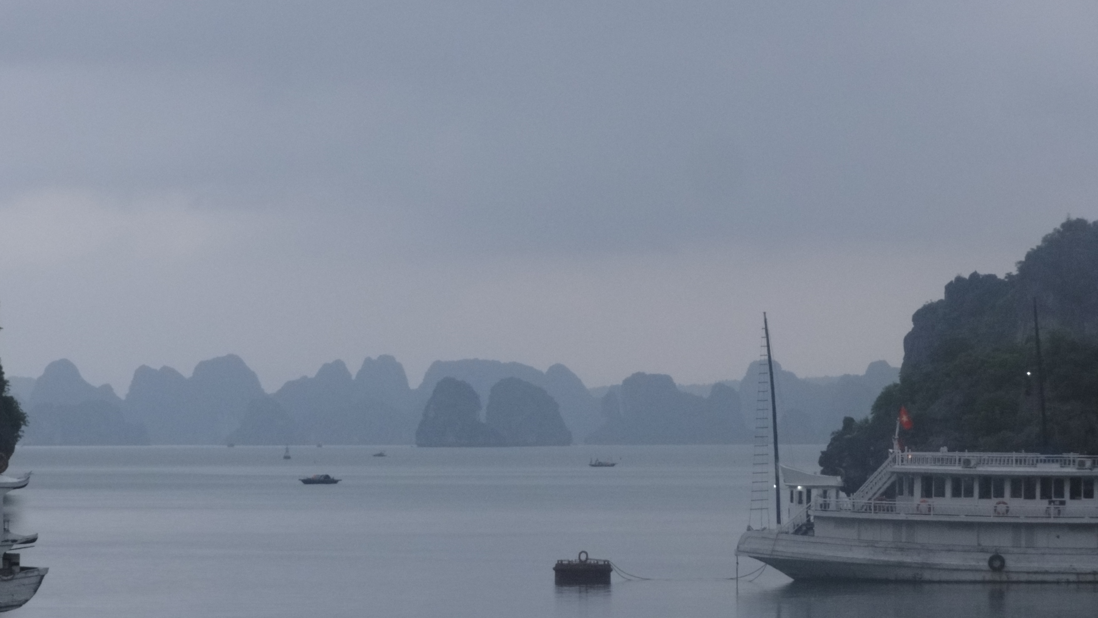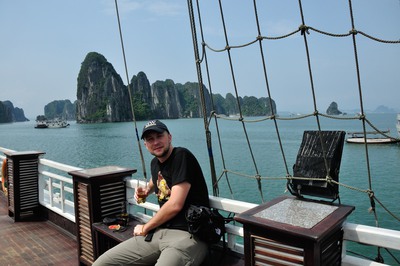 Today is my birthday and we are off on a minibus to Halong Bay, the Unesco World Heritage wonder of north Vietnam. We booked this part of the trip with Vietnam Tour, and had them book us a trip on Oriental Sails Calypso junk boat. On the boat we met quite a few Australians and New Zealanders - Vietnam is a popular destination for them. This included one guy from some outback that I could not, for the life of me, understand. I felt horrible asking him to repeat something three times before saying "I am sorry, I have no idea what you are saying".